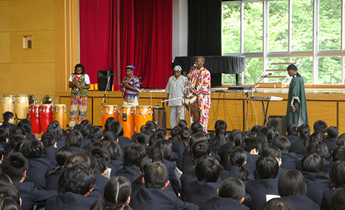 子供たちが文化芸術に親しむきっかけになるよう、区内の小中学校に民族音楽や打楽器など様々なプロの音楽家を派遣しています。