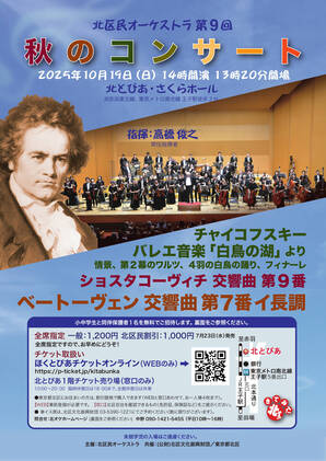 1988年11月、団長にチェリストの故清水勝雄氏、指揮者に内藤彰氏を迎え、区内在住、在勤、在学の音楽愛好者を中心に結成されました。北区文化振興財団の区民オーケストラ・混声合唱団育成事業の一環として活動を続けており、毎週土曜日の午後6時より、おもに北とぴあにて練習を重ねています。