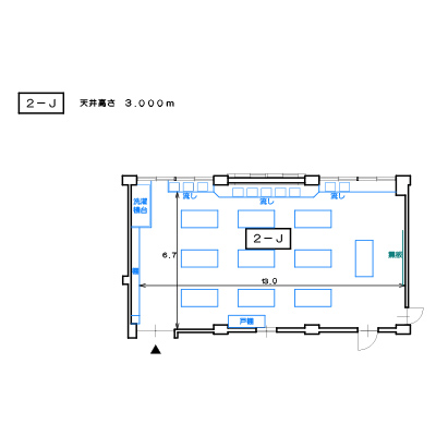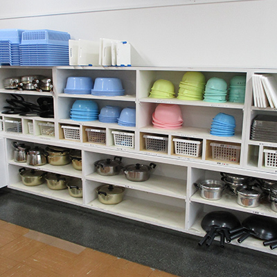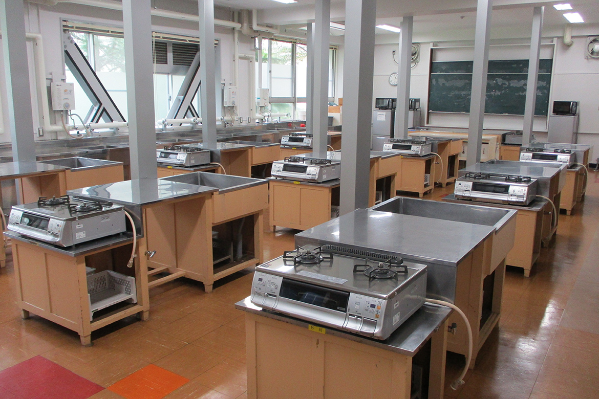 10台のキッチンテーブルと、ガスコンロ・電子レンジ・冷蔵庫を備え、 料理教室などにご利用いただけます。