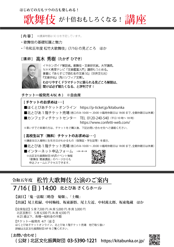 (公財)北区文化振興財団 TEL 03-5390-1221