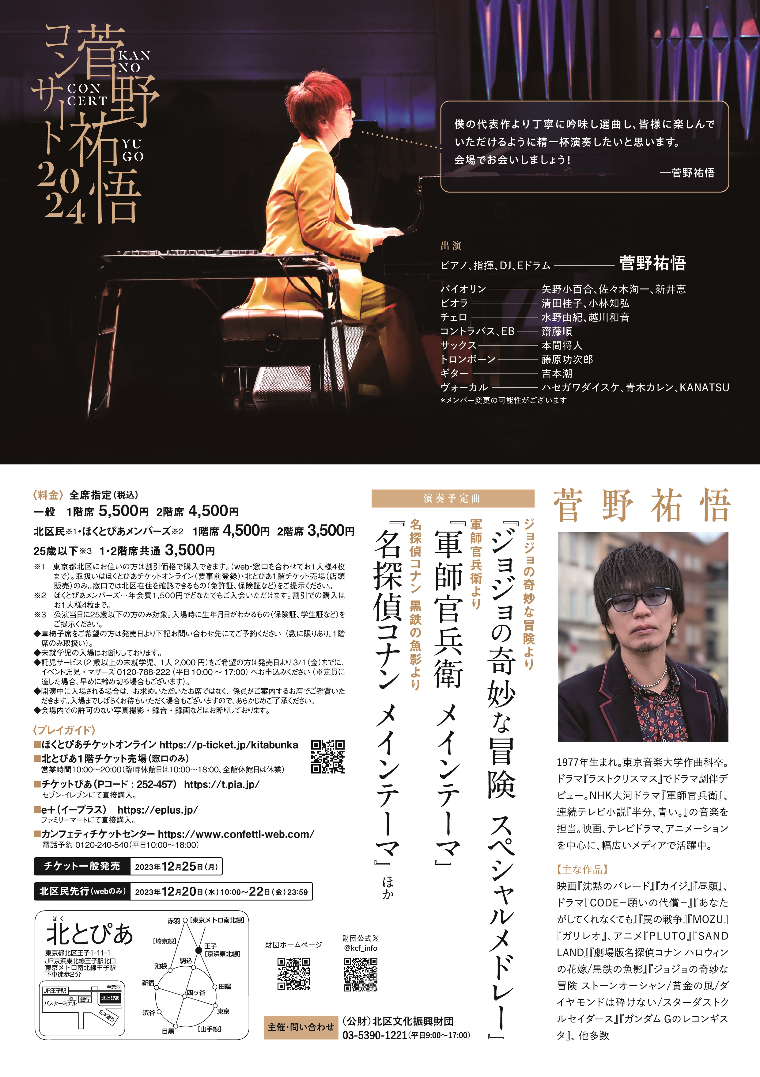 一般発売日以降に(公財)北区文化振興財団 (TEL 03-5390-1221 )へお申し込みください。(数に限りがあります)