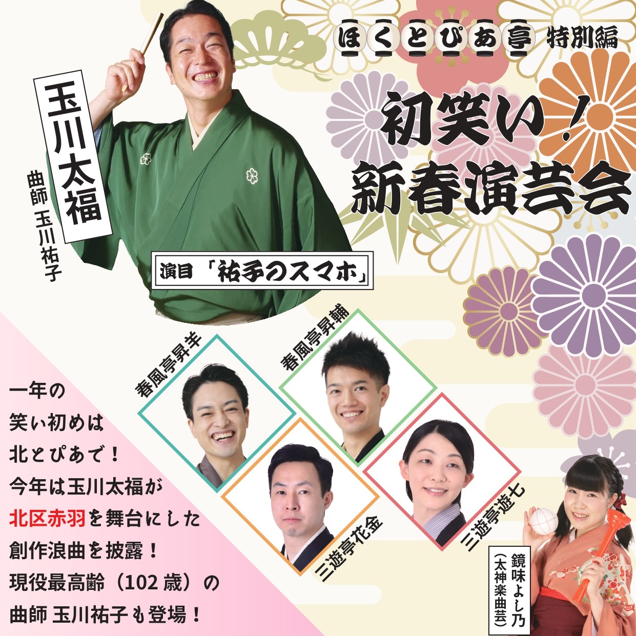 今年は玉川太福が北区赤羽を舞台にした創作浪曲を披露!現役最高齢(102歳)の曲師、玉川祐子も登場!