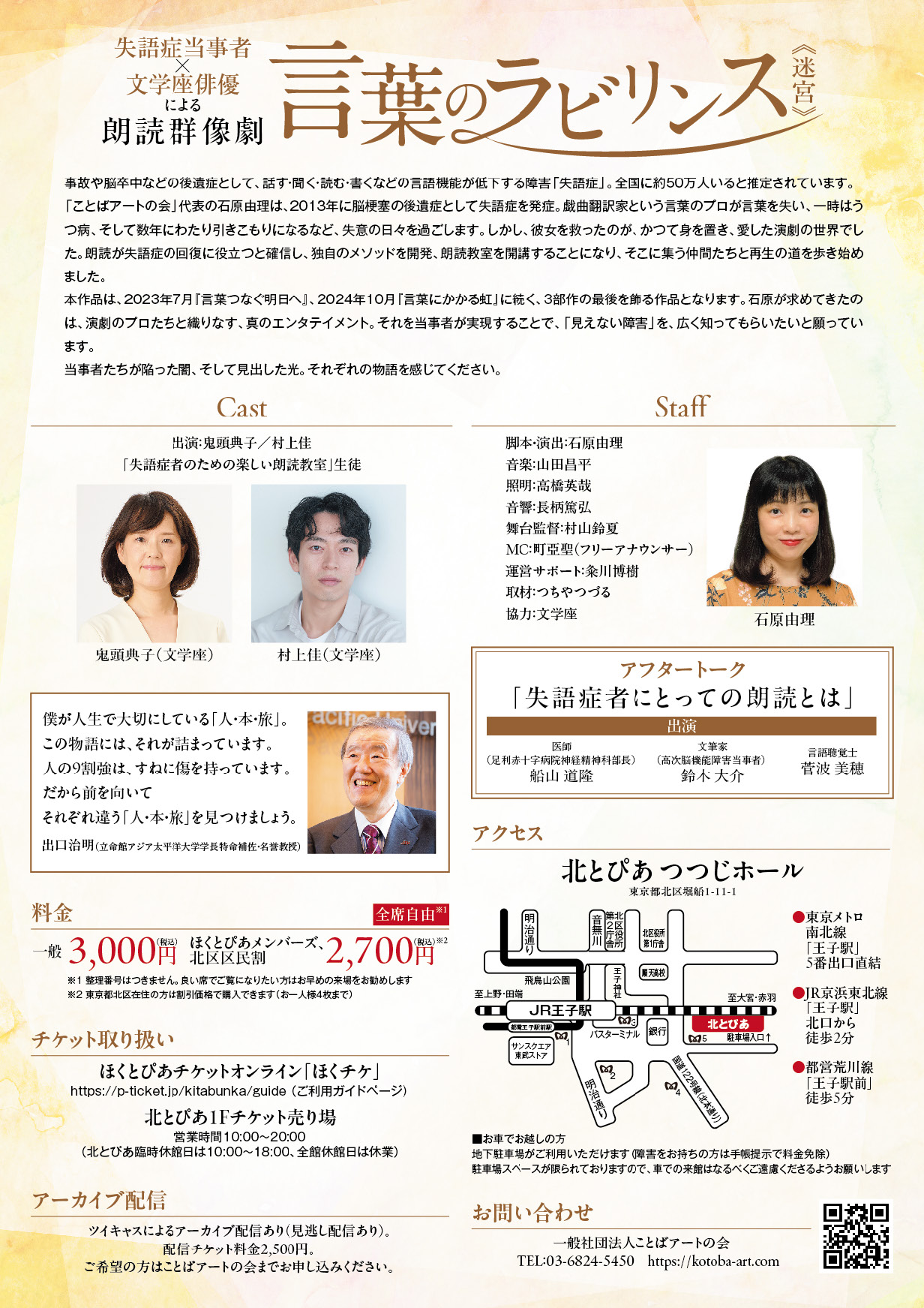 ※車椅子でご鑑賞を希望の方はチケット購入後、事前に北区文化振興財団(03-5390-1221/平日9:00~17:00)にご連絡ください。