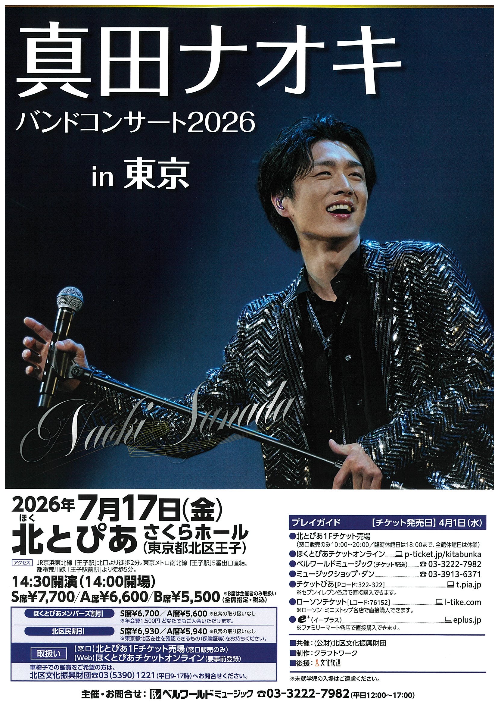 車椅子で鑑賞をご希望の方は、一般発売日より(公財)北区文化振興財団(電話03-5390-1221)へお申し込みください。 (受付時間:平日9:00~17:00・要予約・数に限り有り)