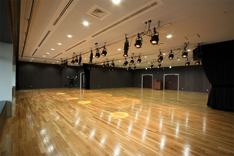 可動式の舞台・客席が組める床面板張りの多目的ホール。