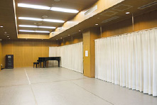 モニターテレビ、防音・防振構造、床面板張、一部鏡面張、バレエ用レッスンバー、椅子・机(有料備品) 音響セット、跳ね返りスピーカー、ワイヤレスマイク、ピアノ ヤマハG 5B・セミコンサート