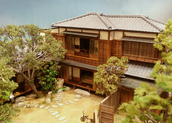 芥川家が田端で暮らした家を1/30ほどの大きさで復元した模型をはじめ、芥川龍之介の関連資料や関連パネルなど展示しています。