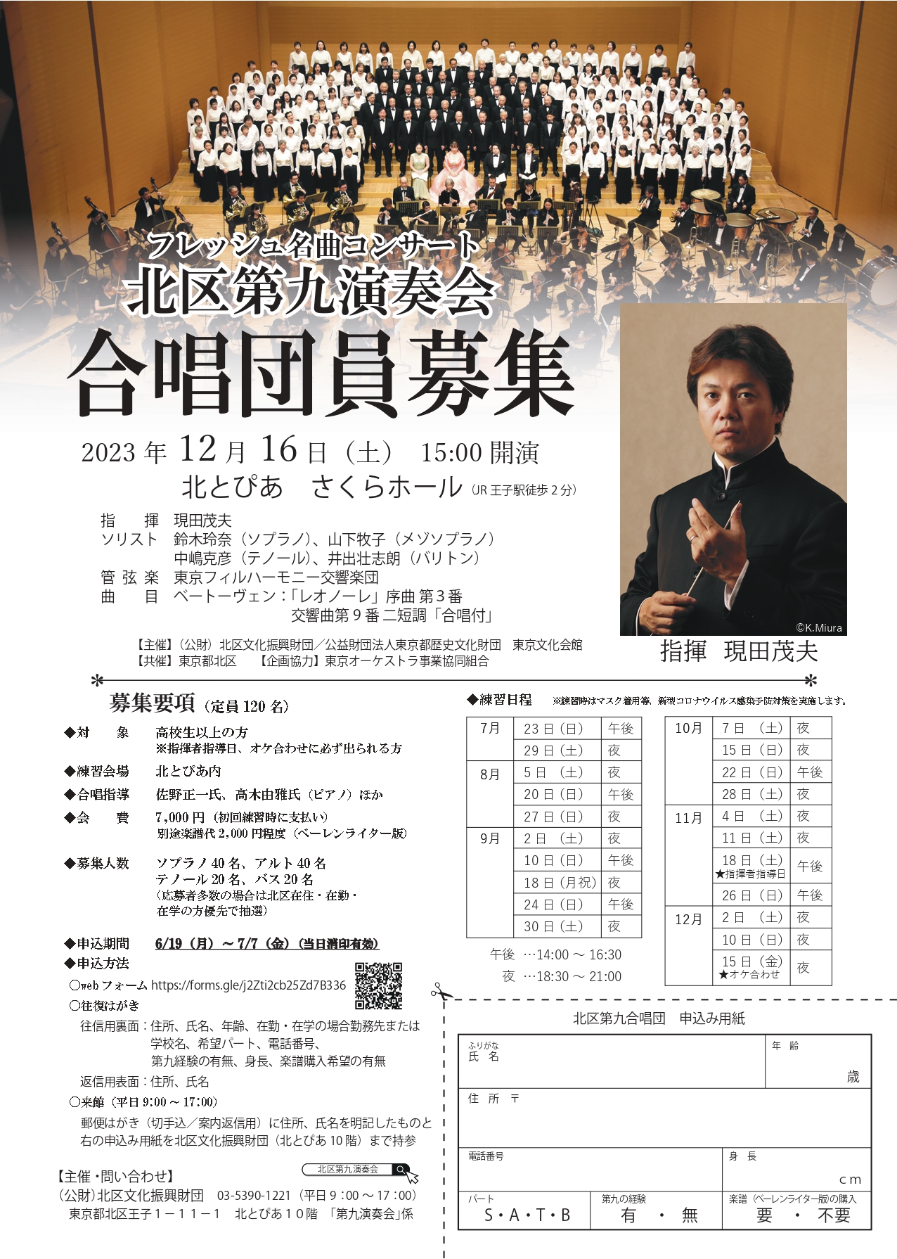 12/16北区第九演奏会、合唱団員を募集いたします。