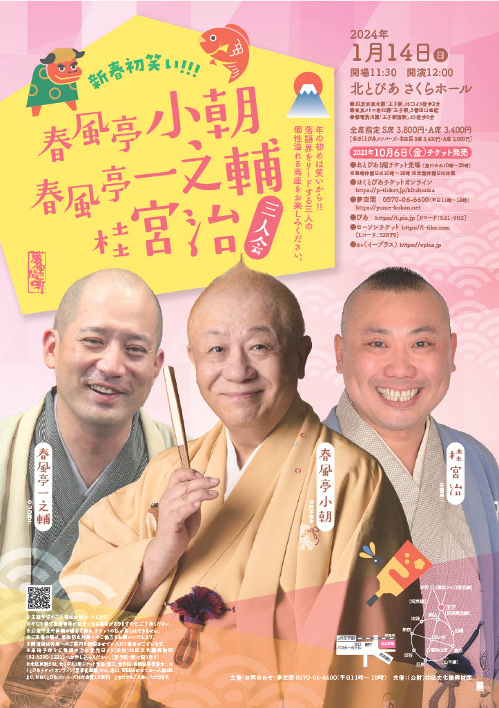 2024/1/14(日)「新春初笑い!!! 春風亭小朝・春風亭一之輔・桂宮治 三人会」