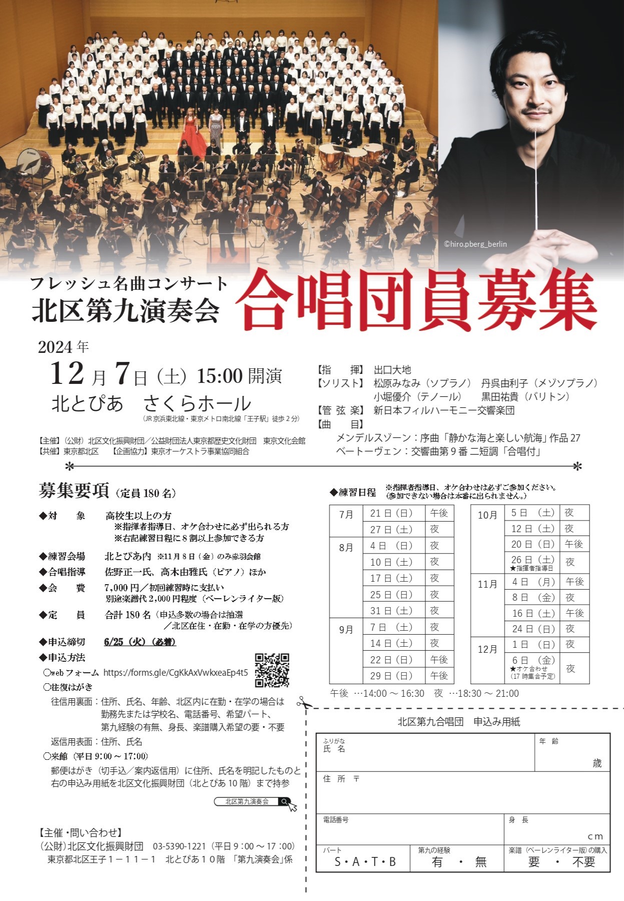 12/7(土)「フレッシュ名曲コンサート 北区第九演奏会」合唱団員を募集いたします。