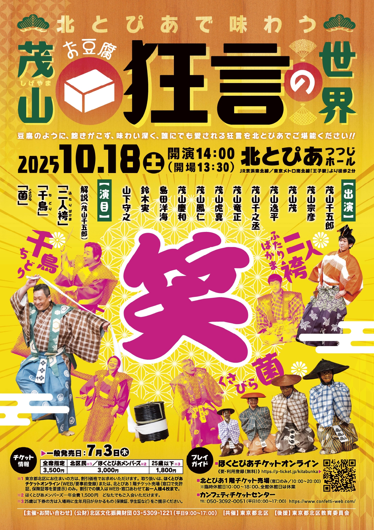お知らせ詳細 2025年05月29日 「北とぴあで味わう 茂山お豆腐狂言の世界」情報を公開しました。 2025/10/18(土)「北とぴあで味わう 茂山お豆腐狂言の世界」 詳細はこちらからご覧ください。