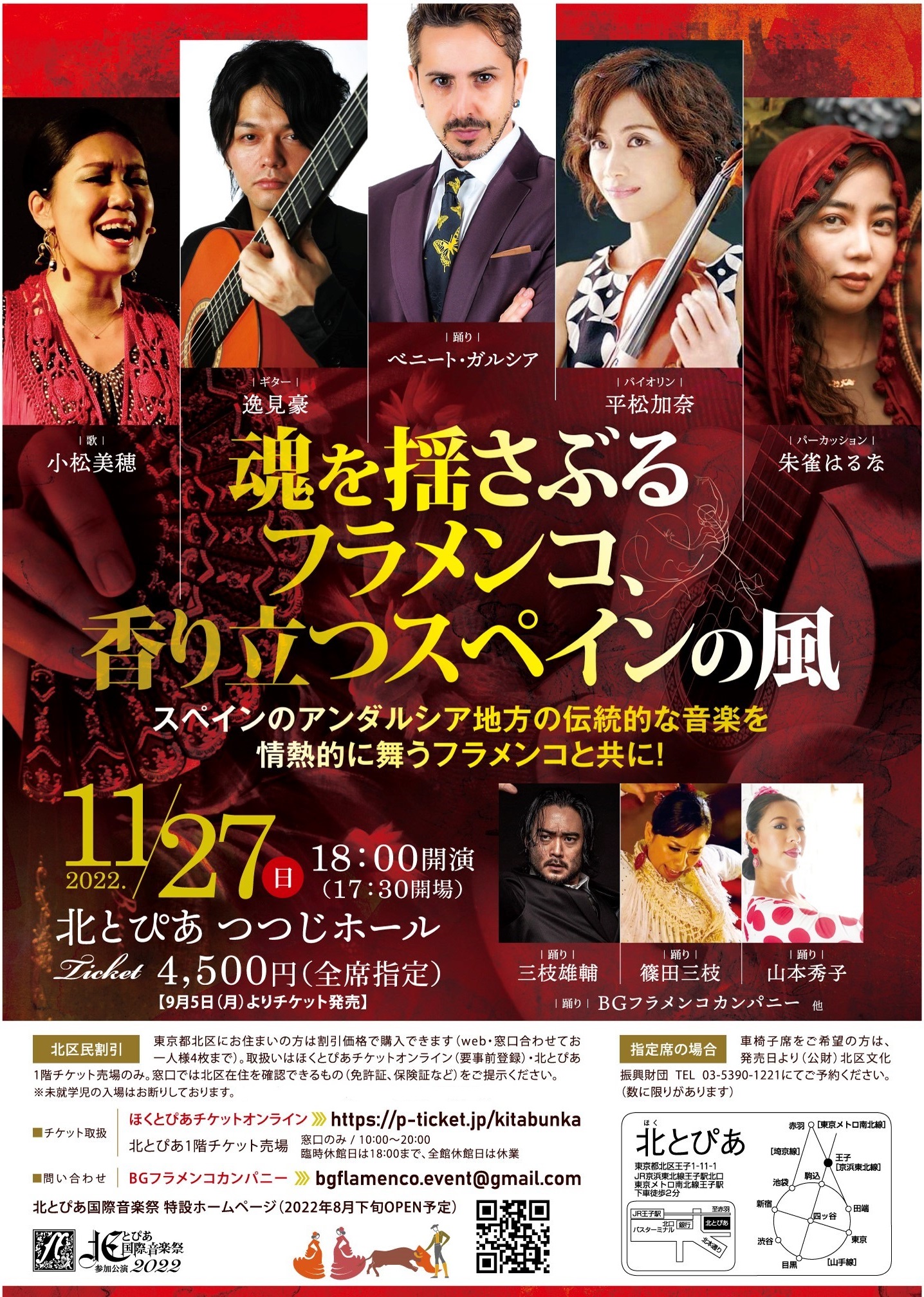 お知らせ詳細 2022年07月26日 「魂を揺さぶるフラメンコ、香り立つスペインの風」情報を公開しました。 2022/11/27(日)「魂を揺さぶるフラメンコ、香り立つスペインの風」 詳細はこちらからご覧ください。