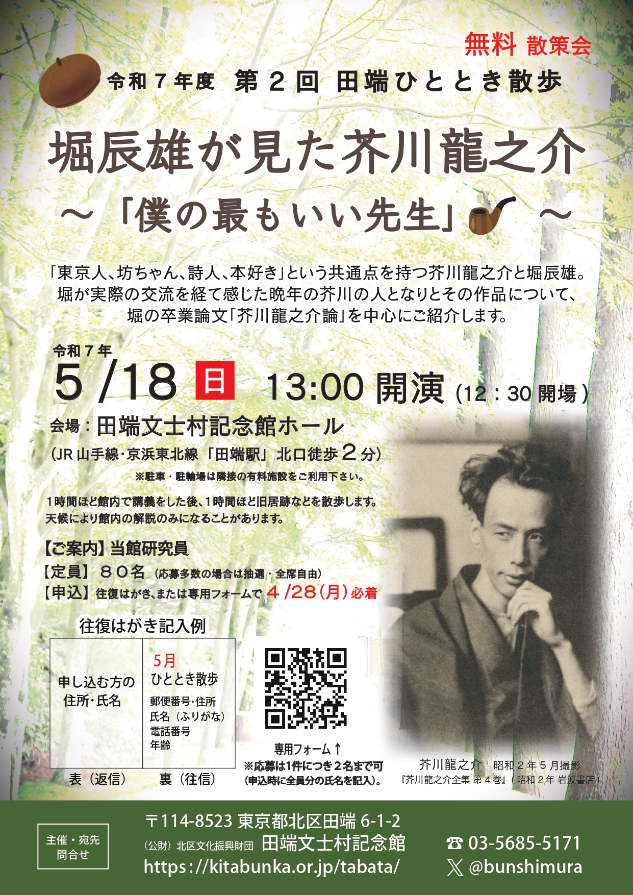 | 概要 | 「東京人、坊ちゃん、詩人、本好き」という共通点を持つ芥川龍之介と堀辰雄。 |