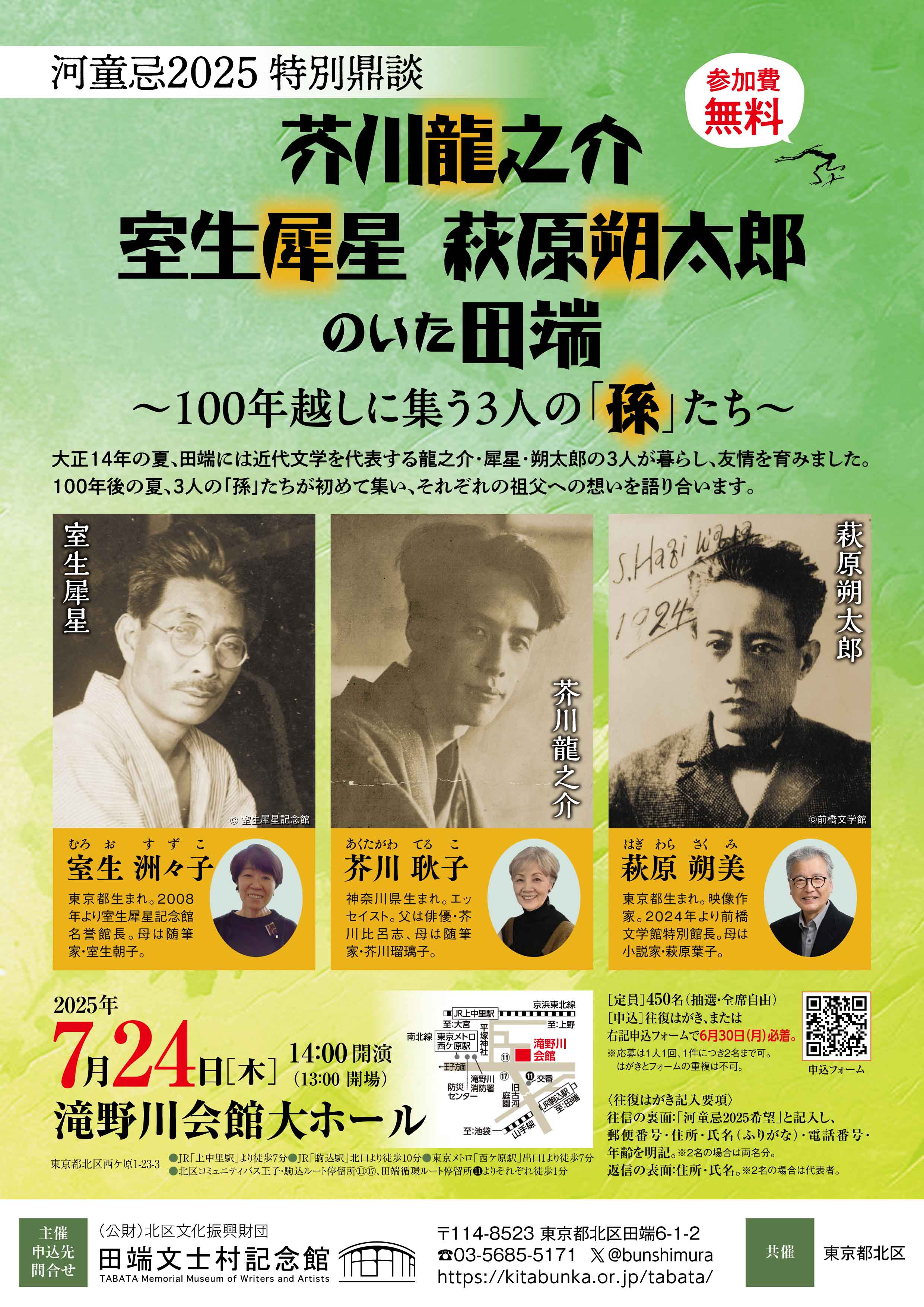 「芥川龍之介 室生犀星 萩原朔太郎のいた田端 ~100年越しに集う3人の「孫」たち~」