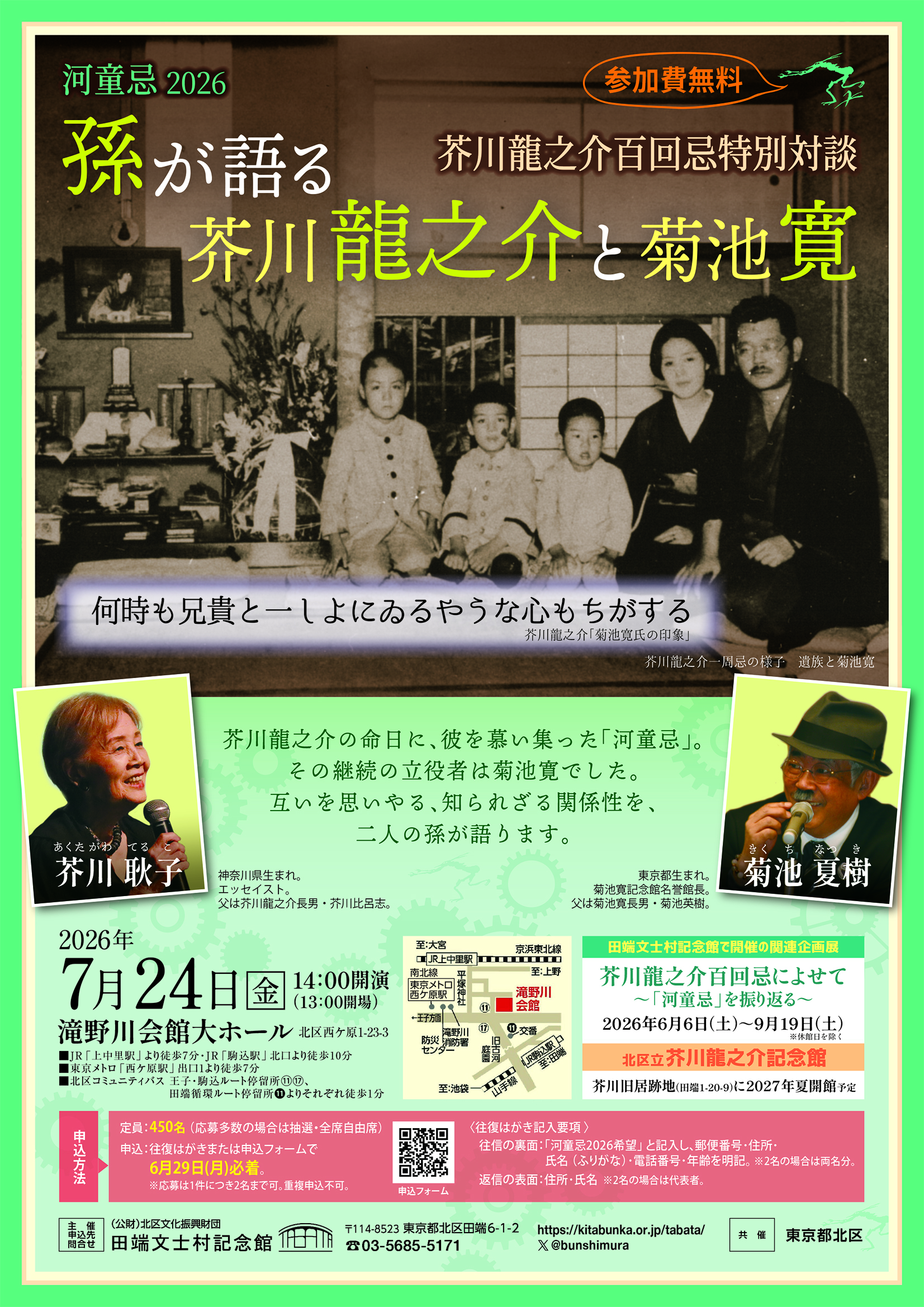 | 概要 | 芥川龍之介の命日に、彼を慕い集った「河童忌」。 |
