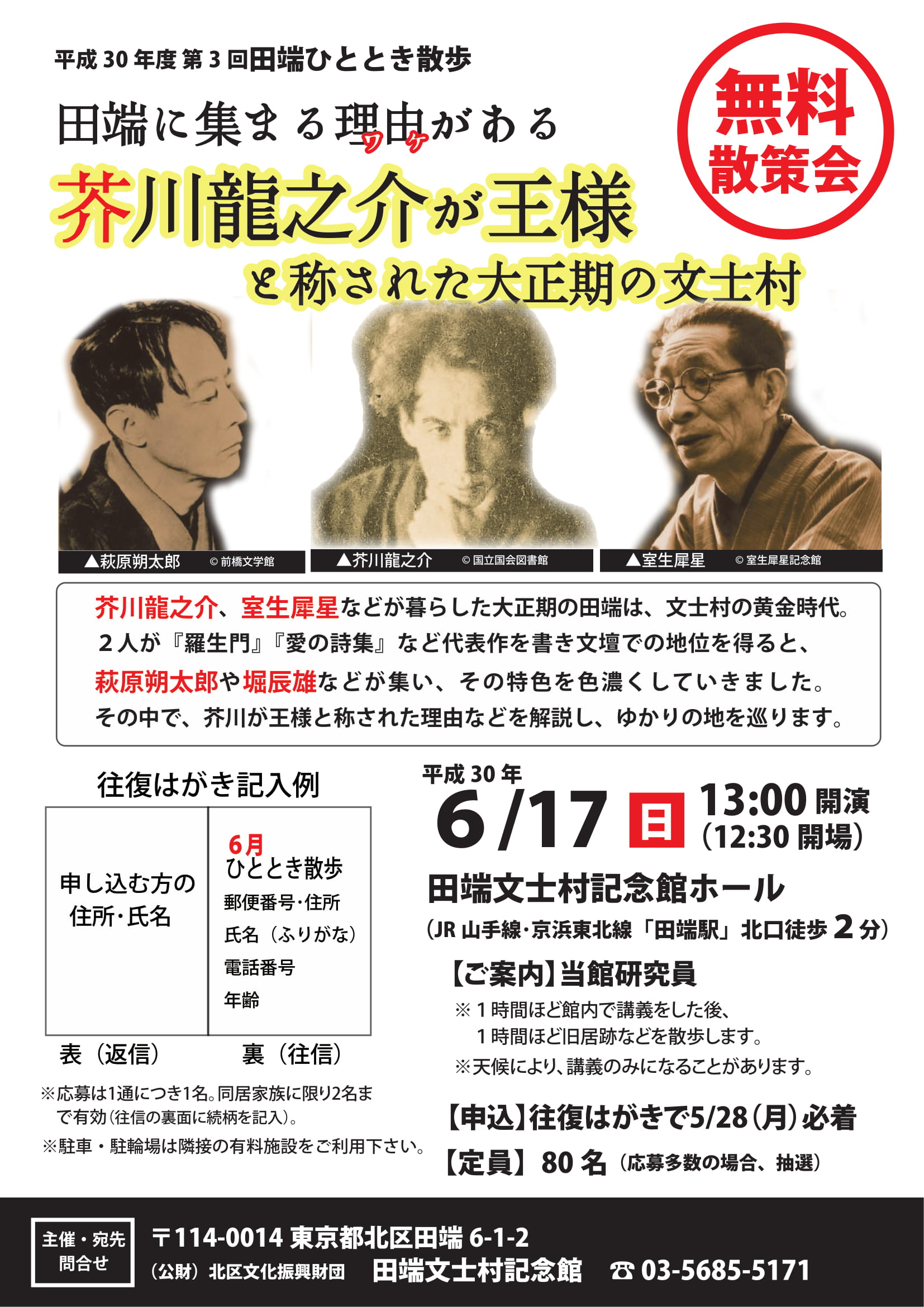 | 概要 | 芥川龍之介や室生犀星などが暮らした大正期の田端は、文士村の黄金時代。芥川が王様と称された理由などを解説し、ゆかりの地を巡ります。 |